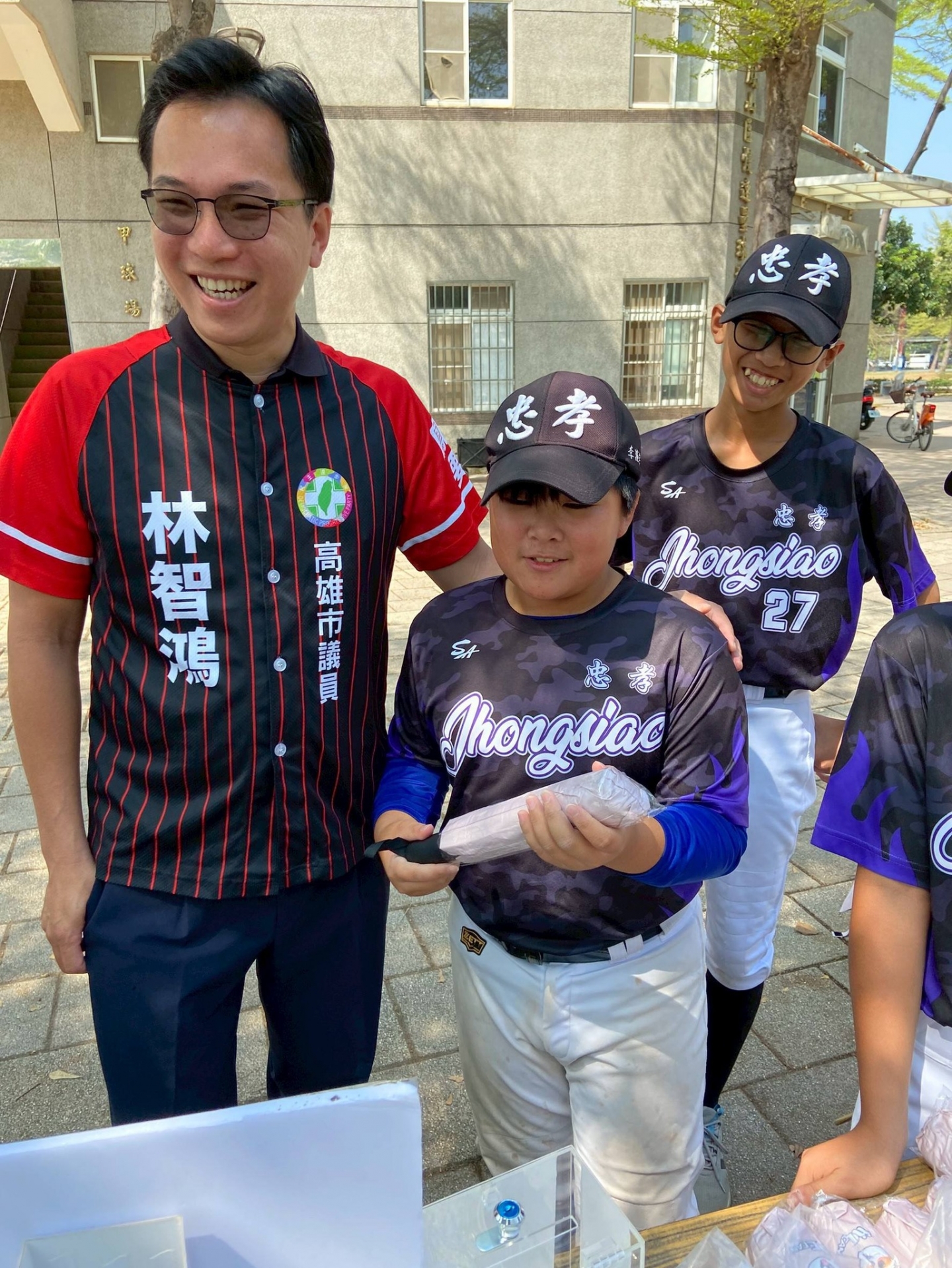 並邀請 高雄市鳳山區忠孝國小少棒隊的小朋友們 一起參與義賣。